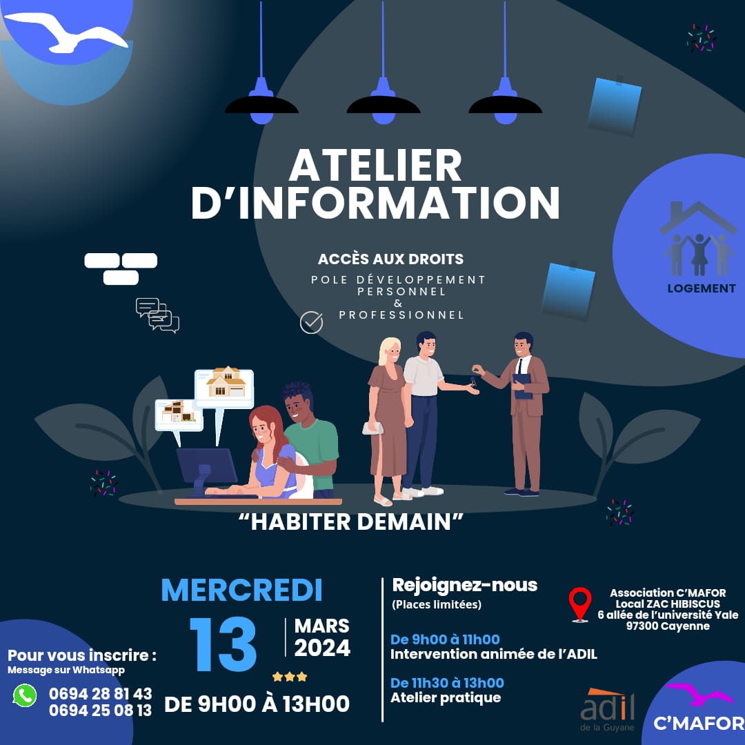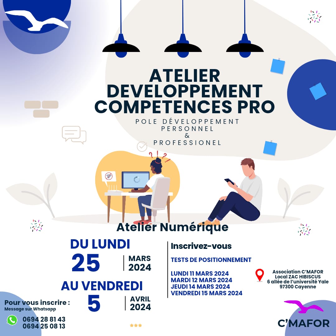 Actus Suivez toute notre actualité C’MAFOR à l’honneur sur Guyane la 1ère !20 octobre 2025 Retour en images : Formation Pré-qualification au Titre Professionnel Encadrant Technique d’Insertion (ETI)3 octobre 2025 Fin de la formation : Pré-qualification au Titre Professionnel Agent de Propreté et d’Hygiène1 octobre 2025 Retour en images : Formation Pré-qualification au Titre Professionnel Ouvrier Paysagiste15 juin 2025 Infos – Prochaine inscription Dispositif ARPA (Accompagnement Renforcé pour les Primo Arrivants – Formation FLE)8 novembre 2024 Cérémonie de remise des diplômes du 27 mars 20245 avril 2024 Atelier Numérique – Développement de compétences professionnelles4 mars 2024 Atelier d’information “HABITER DEMAIN”4 mars 2024 Semaine de l’intégration des étrangers primo-arrivants20 octobre 2023 4ème édition du Festival de l’Insertion29 septembre 2023